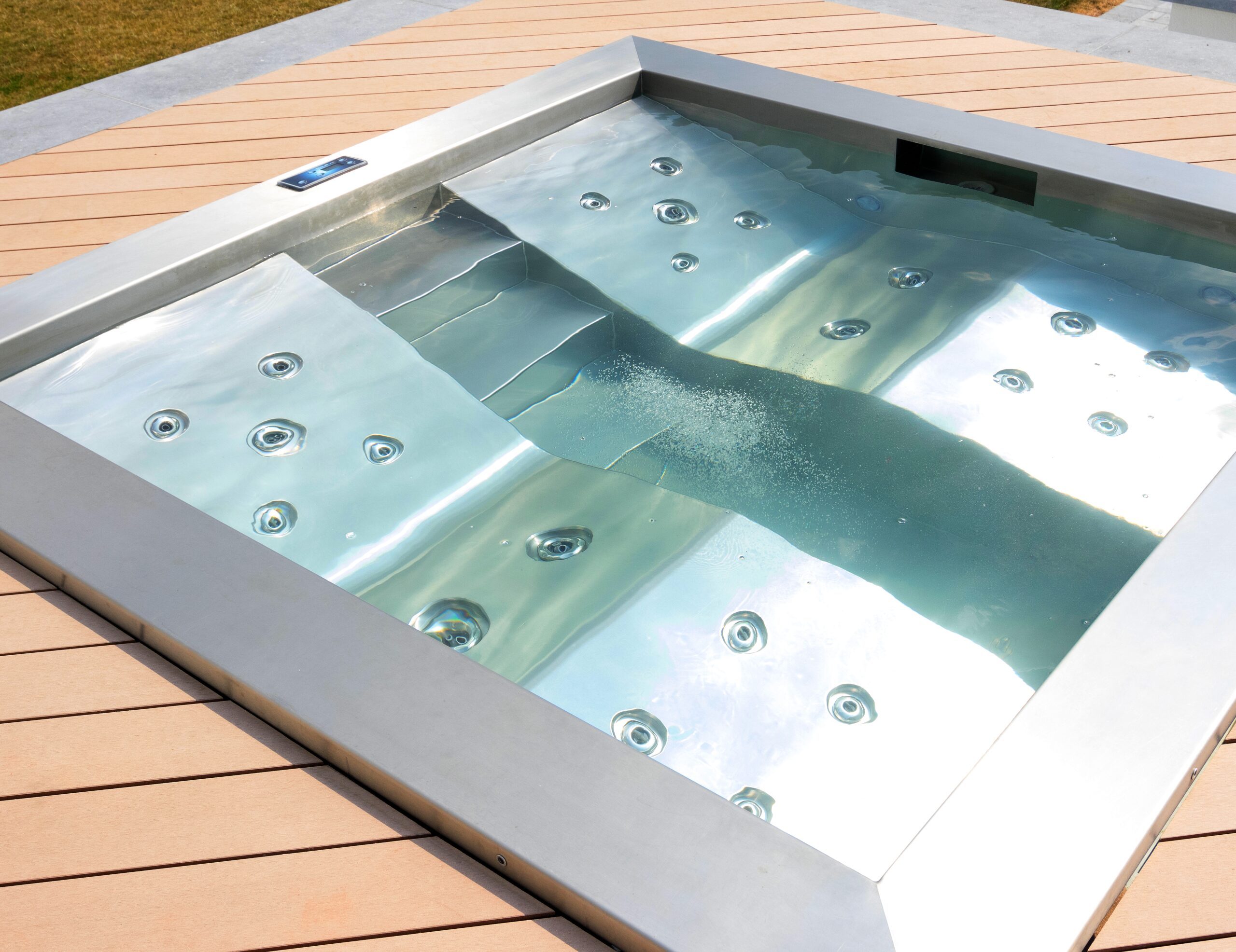 Onze inox zwembaden zijn gemaakt van hoogwaardig roestvrij staal, bestand tegen chemicaliën, slijtage en de schadelijke gevolgen van UV stralen. Hierdoor gaan ze jarenlang mee zonder tekenen van veroudering en zonder noodzaak tot renovatie.