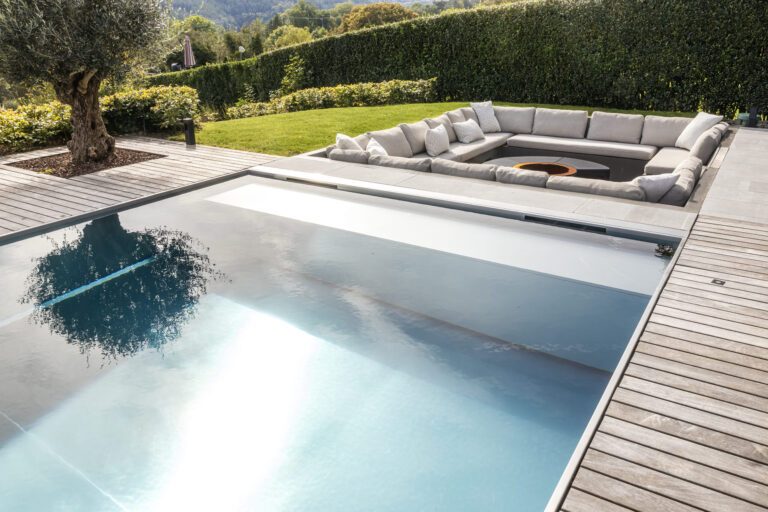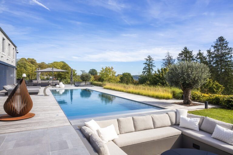 Le nouvel escalier d’angle gracieux offre un accès élégant et facile à l’eau. Cet ajout est non seulement fonctionnel, mais contribue également au design élégant de la piscine. Un véritable accroche-regard qui amène l’ensemble à un niveau supérieur.