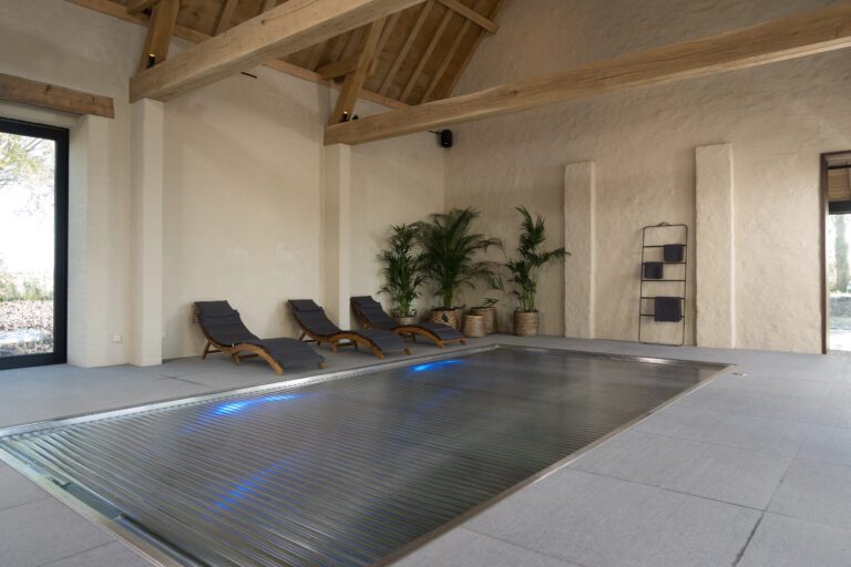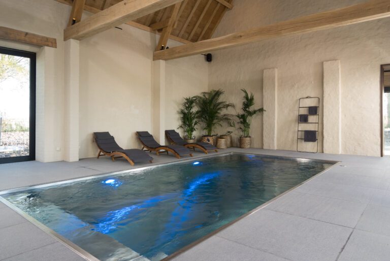 Naast een sauna en hammam kon dit compacte, stijlvolle binnenbad niet ontbreken in deze knappe wellnessruimte. Een oase van ontspanning en luxe, midden in uw eigen huis. Met een doordacht ontwerp en een prachtig uitzicht naar buiten, creƫert dit inox zwembad een gevoel van rust en ruimte.