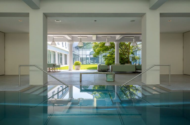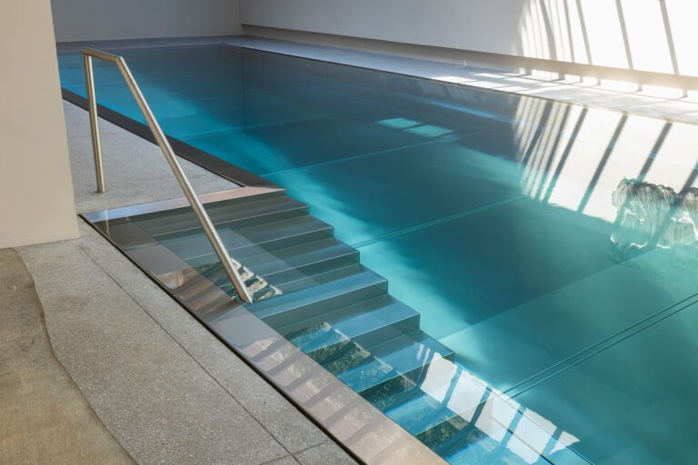 De combinatie van inox, de immense glazen lichtstraat en het water creëert een unieke zwemervaring. Het lijkt wel alsof je in een luxe spa bent in een vijfsterrenhotel. Het natuurlijke licht dat binnenvalt via de lichtstraat en reflecteert op de edelstalen wanden creëert een prachtige ambiance.