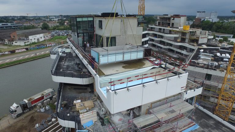 Het plaatsen van dit inox zwembad op het zevende verdiep van Zuidzicht was een complexe operatie die precisiewerk vereiste. Met slechts enkele centimeters speling werd het zwembad met een torenkraan op zijn plaats gehesen. De duurzame inox constructie en de zorgvuldig uitgevoerde afwerking garanderen permanente waterdichtheid en jarenlang zorgeloos zwemplezier.