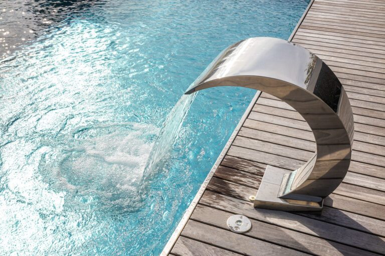 Voor extra ontspanning en comfort is er een hydromassage geïnstalleerd met krachtige onderwaterjets en een fontein. Deze luxueuze toevoegingen creëren een wellnesservaring in eigen tuin, waar u kunt genieten van rustgevende massages en het ontspannende geluid van kabbelend water. Zo wordt elk moment in dit zwembad er één van ontspanning en luxe.